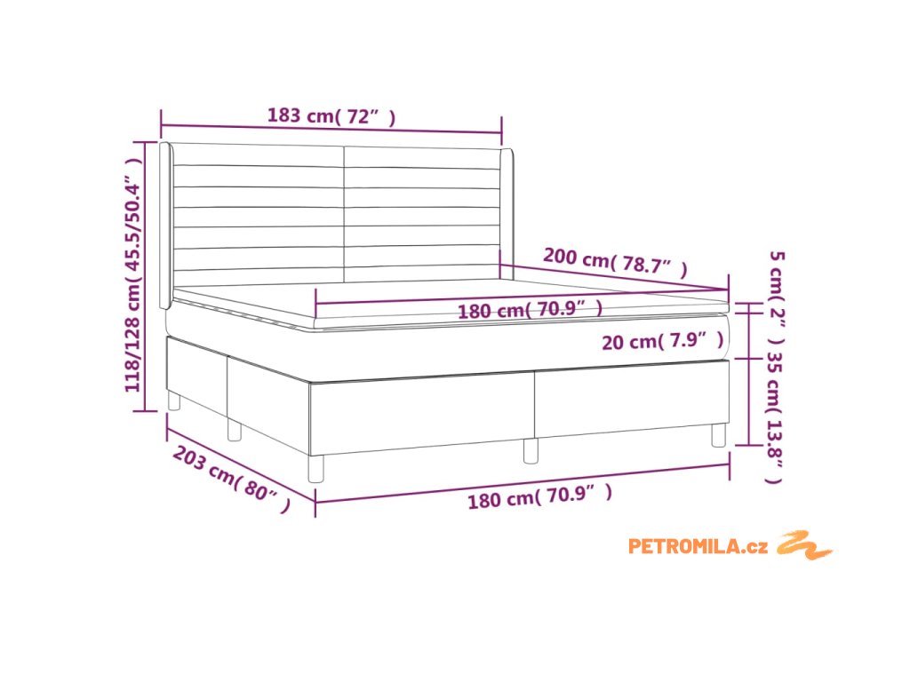 - Celkové rozměry: 180 x 200 x 20 cm (D x Š x V)