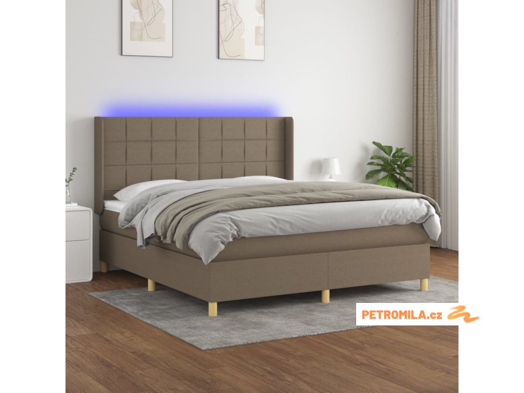 Box spring postel s matrací a LED taupe 180x200 cm textil