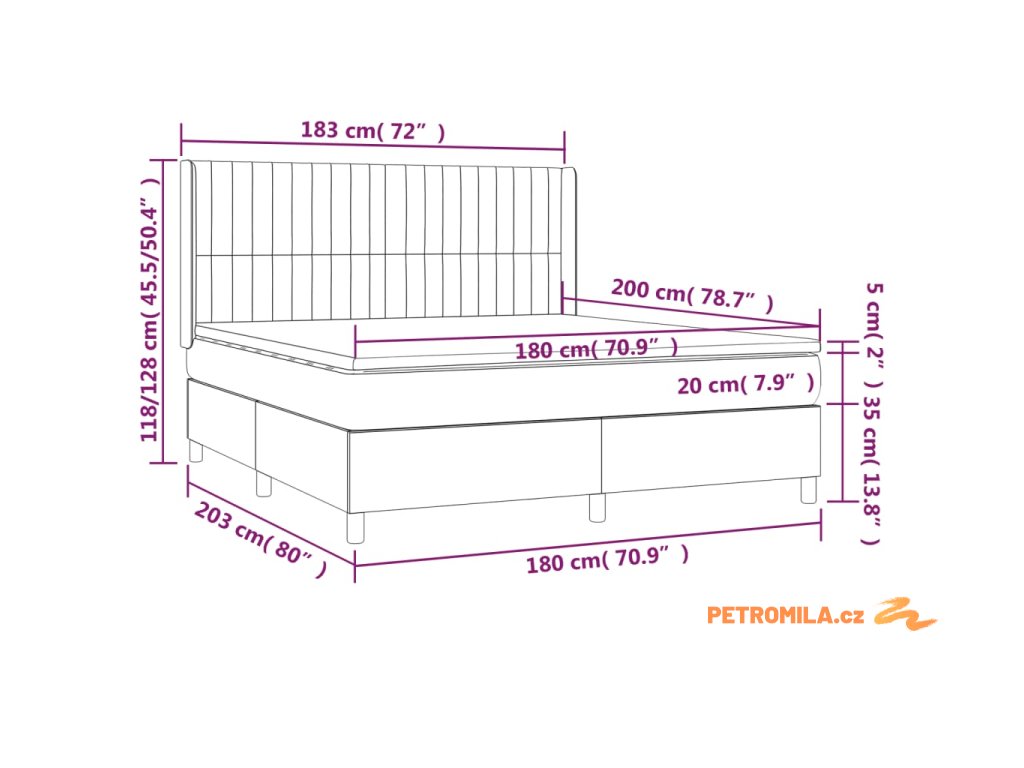 Box spring postel s matrací a LED taupe 180x200 cm textil