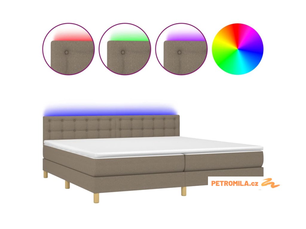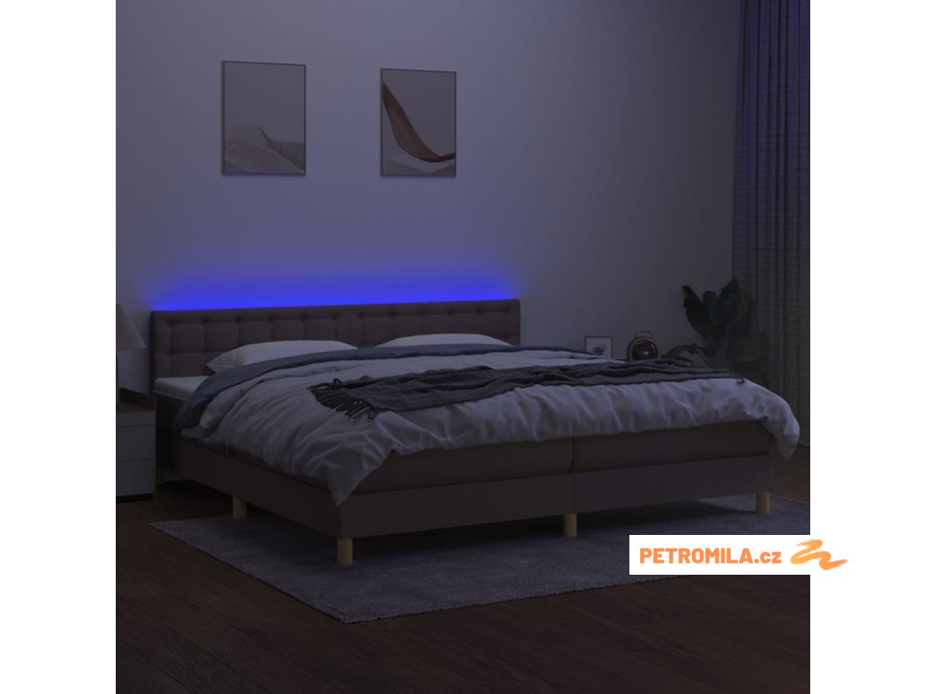 Box spring postel s matrací a LED taupe 200x200 cm textil