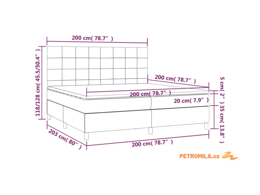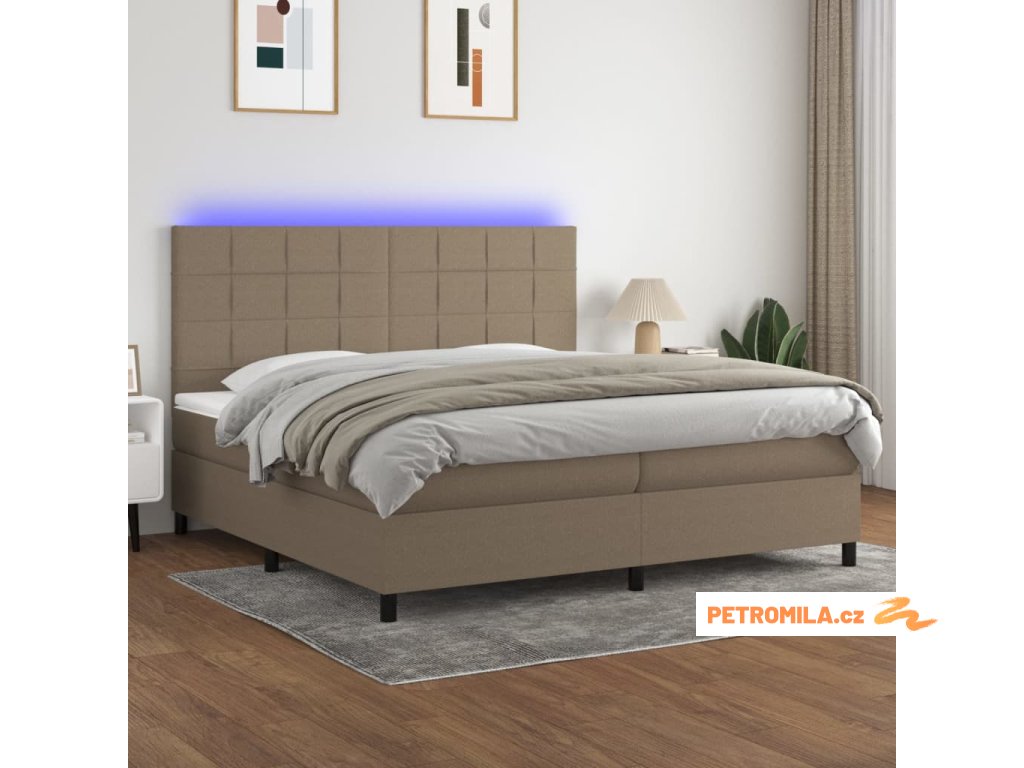 Box spring postel s matrací a LED taupe 200x200 cm textil