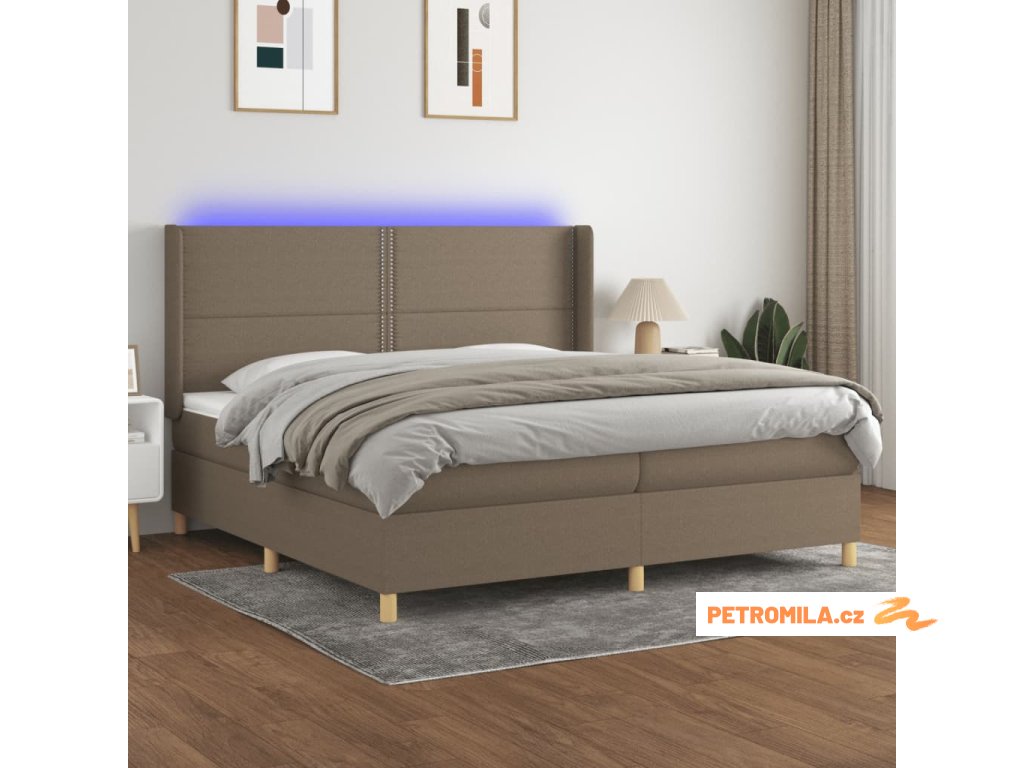 Box spring postel s matrací a LED taupe 200x200 cm textil