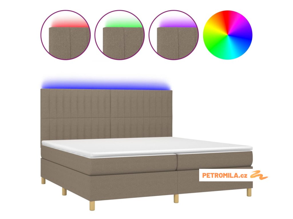 Box spring postel s matrací a LED taupe 200x200 cm textil