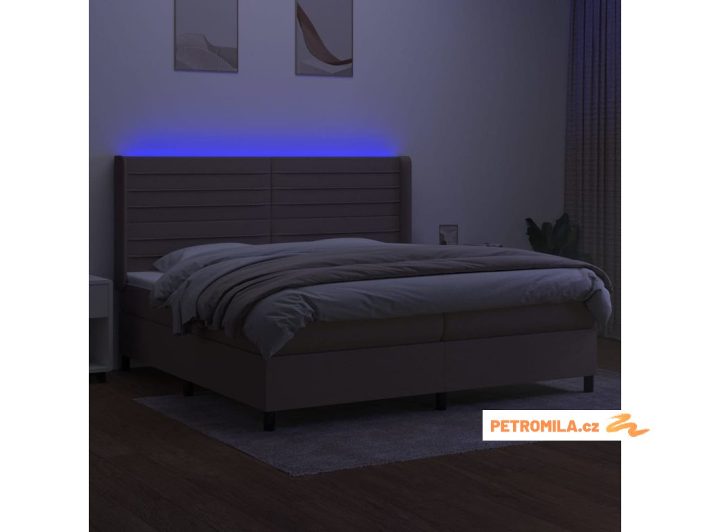 Box spring postel s matrací a LED taupe 200x200 cm textil