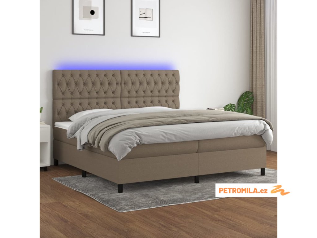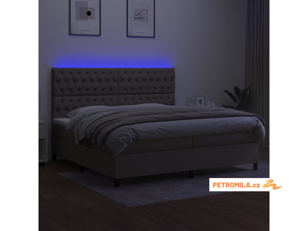 Box spring postel s matrací a LED taupe 200x200 cm textil