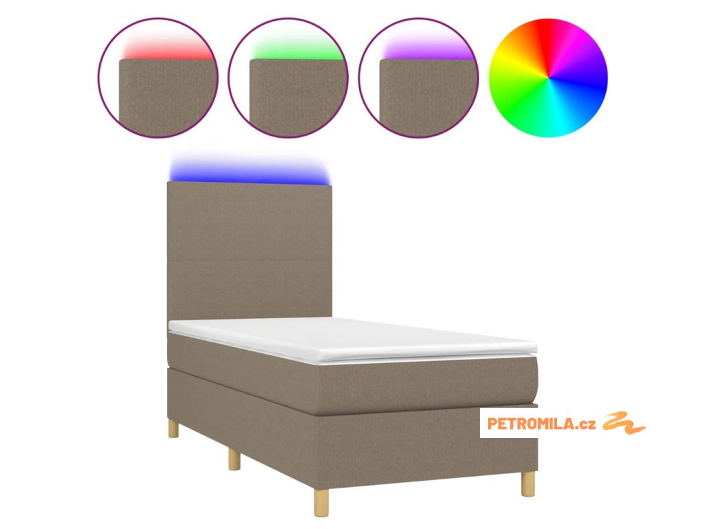 Box spring postel s matrací a LED taupe 80 x 200 cm textil