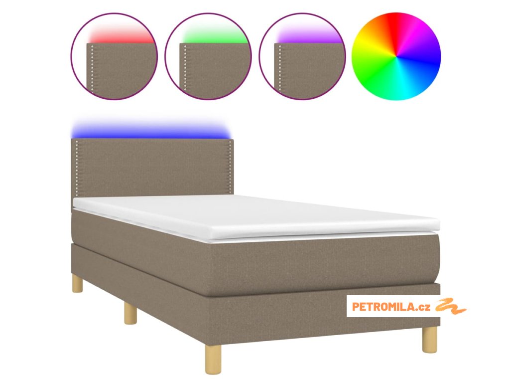 Box spring postel s matrací a LED taupe 90x190 cm textil