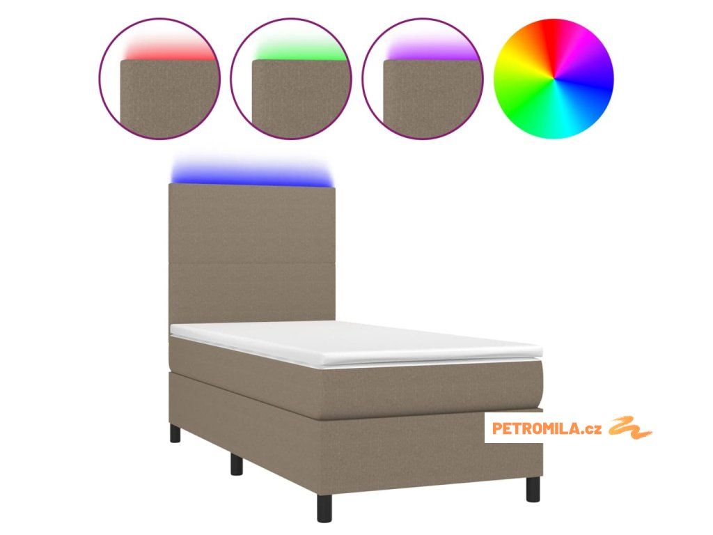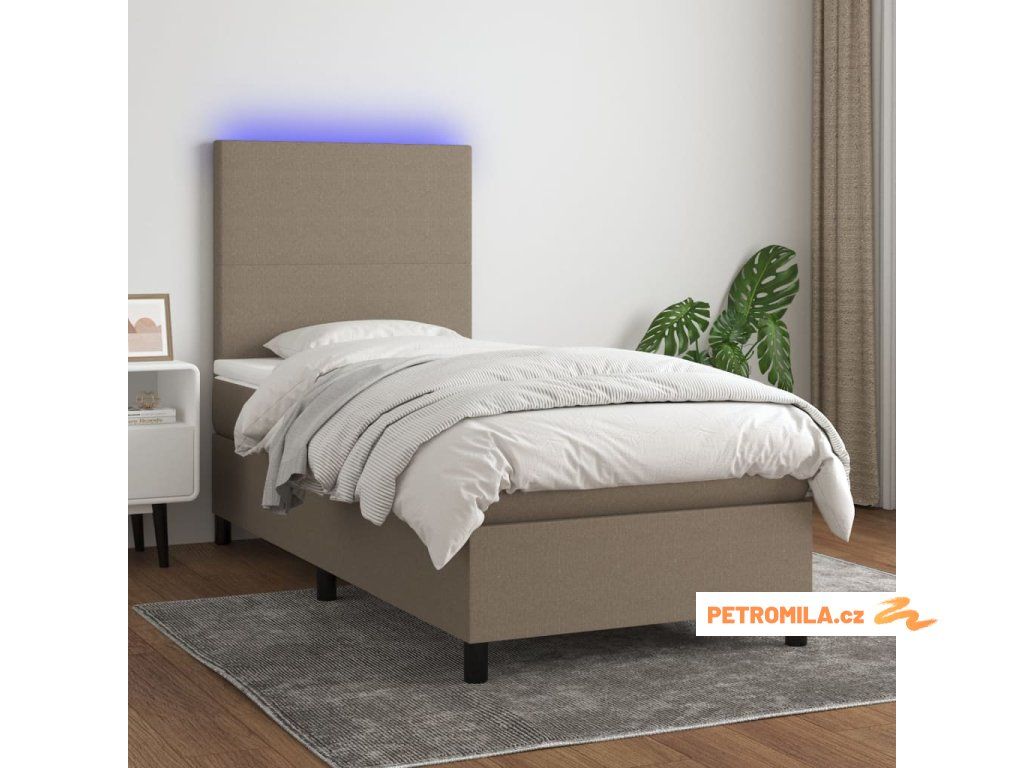 Box spring postel s matrací a LED taupe 90x190 cm textil