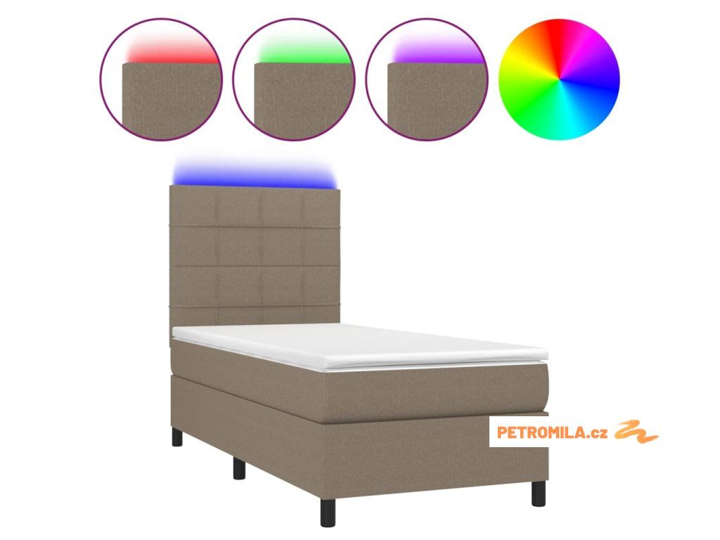 Box spring postel s matrací a LED taupe 90x190 cm textil