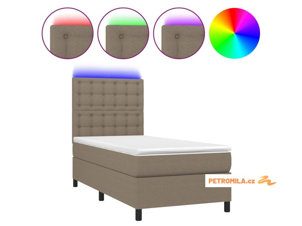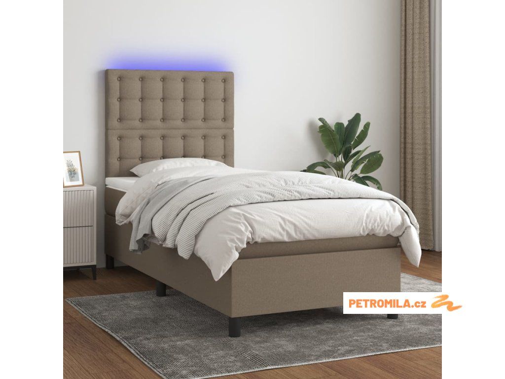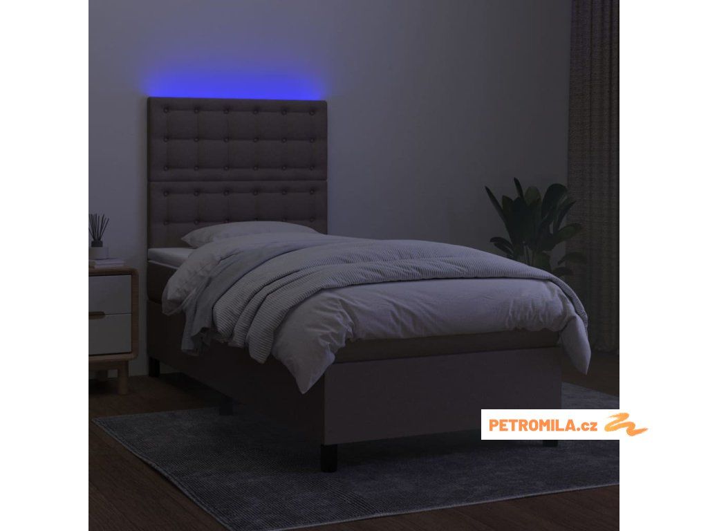 Box spring postel s matrací a LED taupe 90x190 cm textil