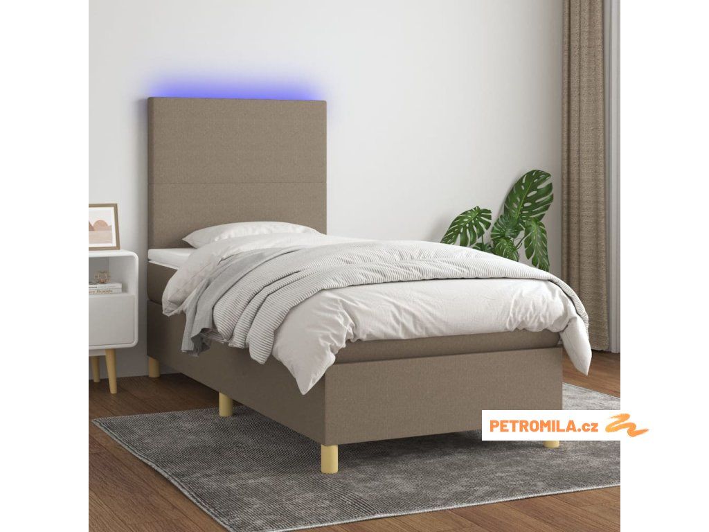 Box spring postel s matrací a LED taupe 90x190 cm textil