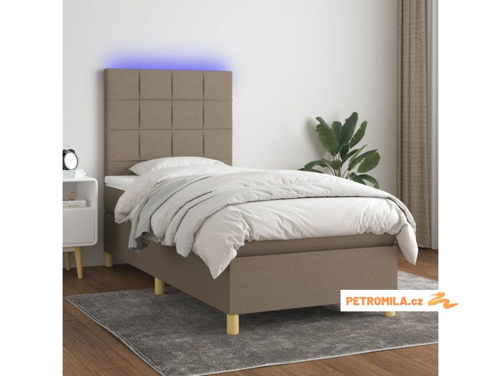 Box spring postel s matrací a LED taupe 90x190 cm textil
