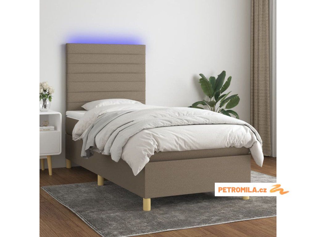 Box spring postel s matrací a LED taupe 90x190 cm textil
