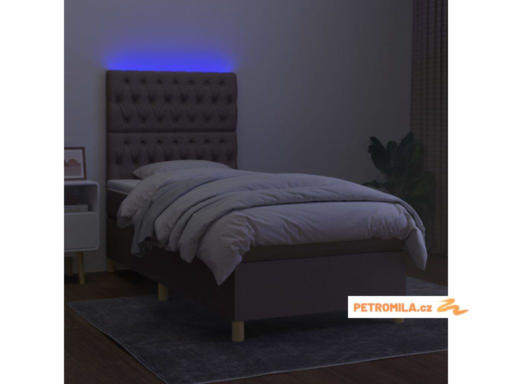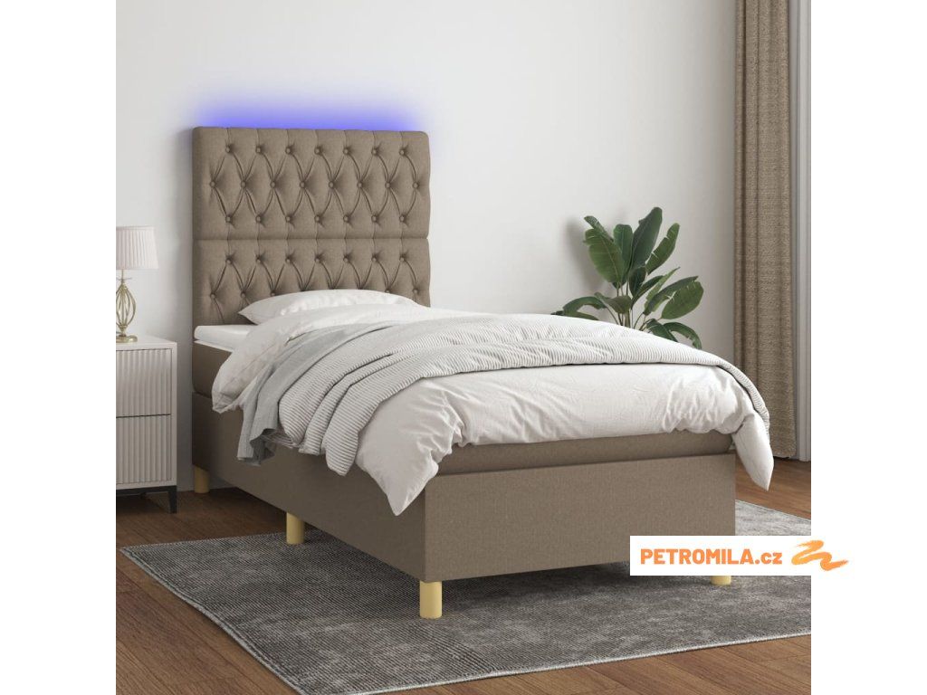 Box spring postel s matrací a LED taupe 90x190 cm textil