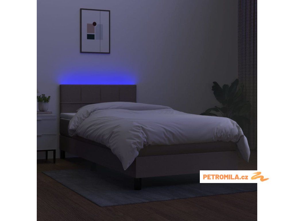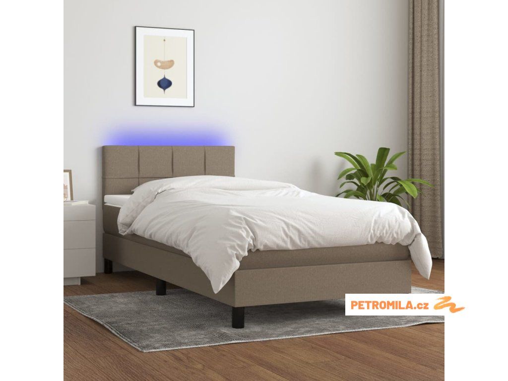 Box spring postel s matrací a LED taupe 90x190 cm textil