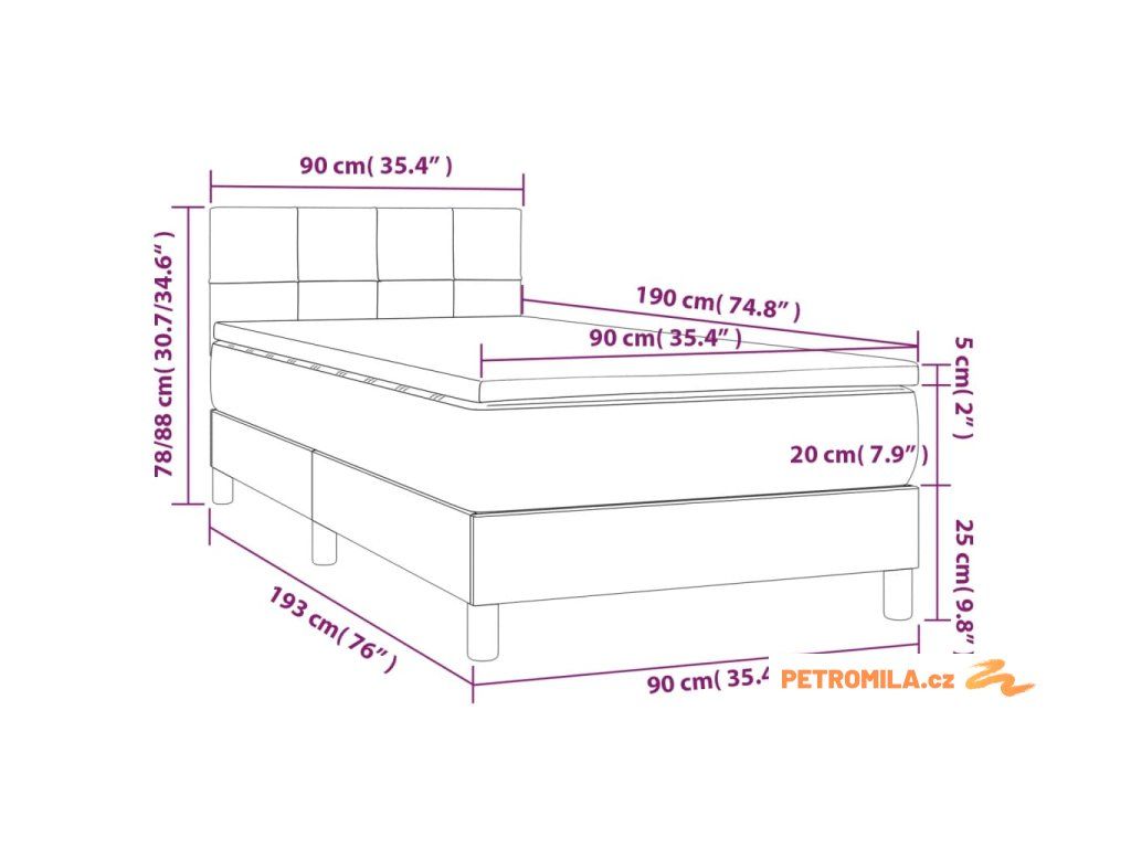 - Rozměry: 90 x 190 x 20 cm (Š x D x V)