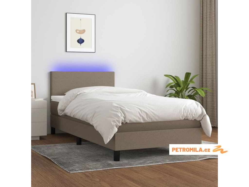 Box spring postel s matrací a LED taupe 90x190 cm textil