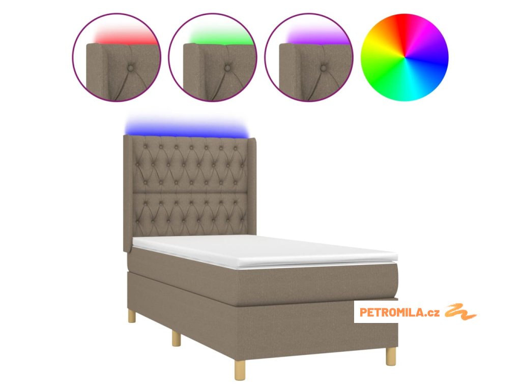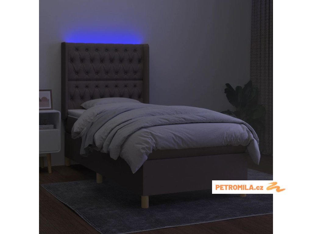 Box spring postel s matrací a LED taupe 90x200 cm textil