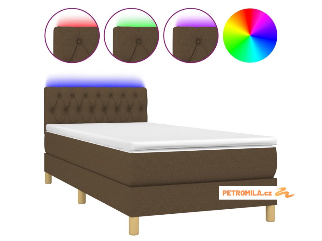 Box spring postel s matrací a LED tmavě hnědá 100x200 cm textil