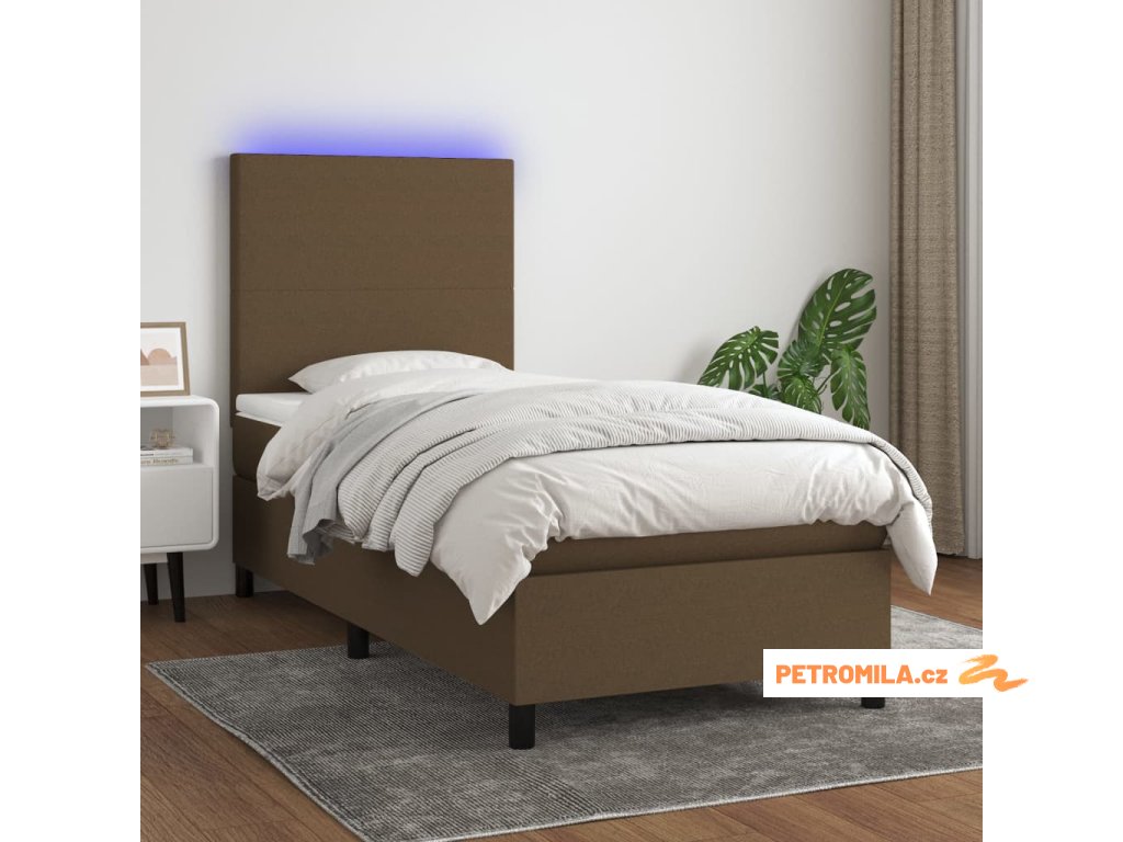 Box spring postel s matrací a LED tmavě hnědá 100x200 cm textil