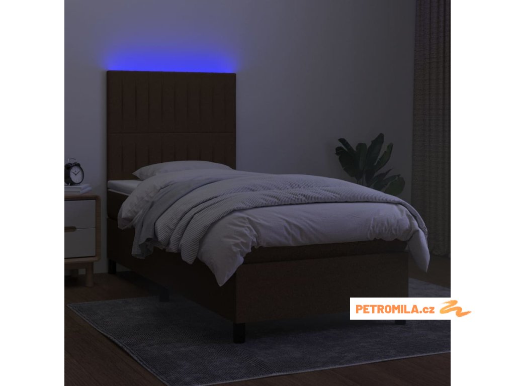 Box spring postel s matrací a LED tmavě hnědá 100x200 cm textil