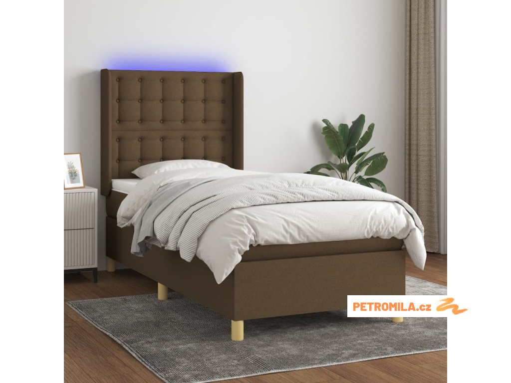 Box spring postel s matrací a LED tmavě hnědá 100x200 cm textil