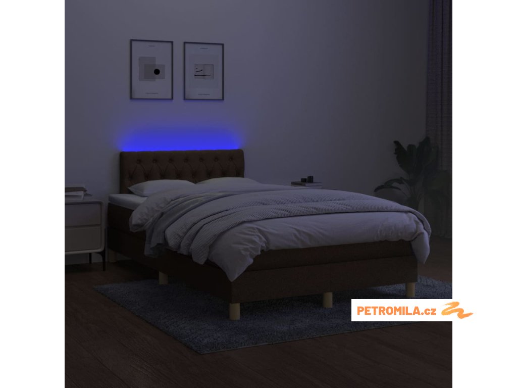 Box spring postel s matrací a LED tmavě hnědá 120x200 cm textil