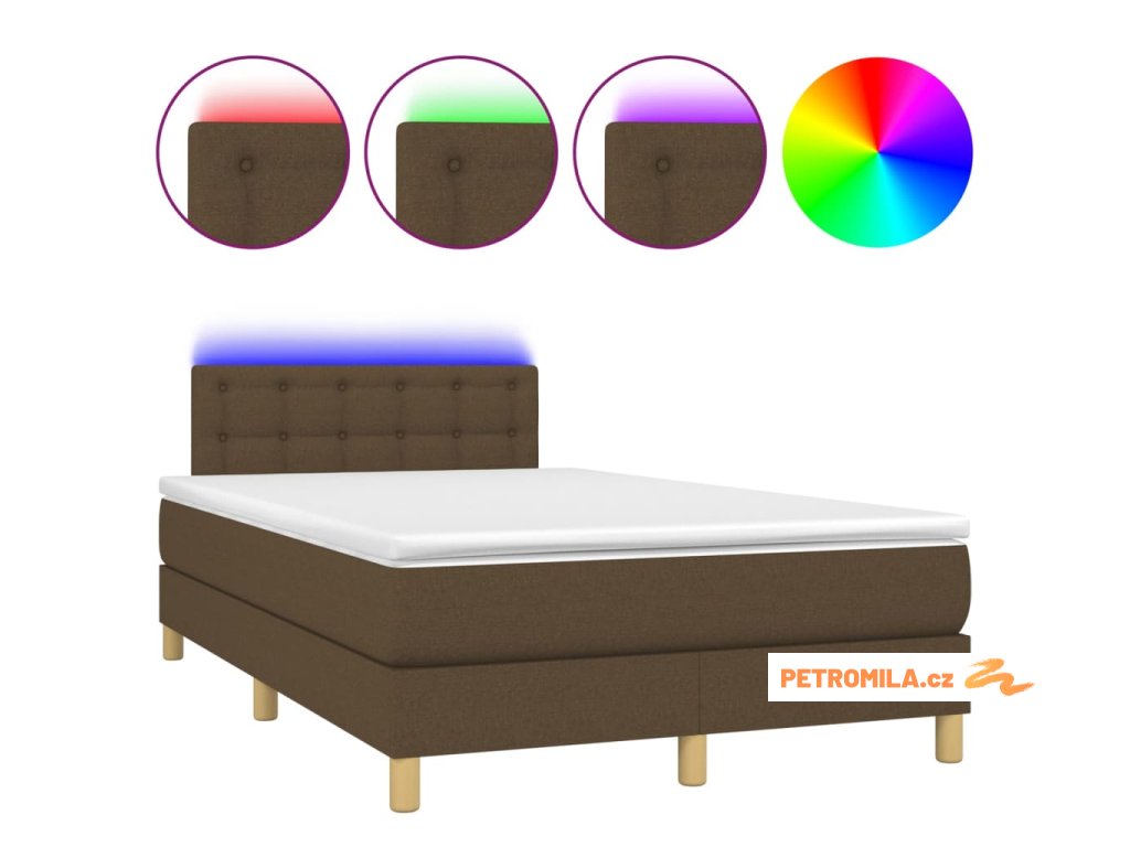 Box spring postel s matrací a LED tmavě hnědá 120x200 cm textil