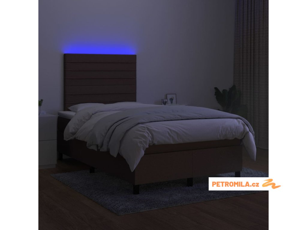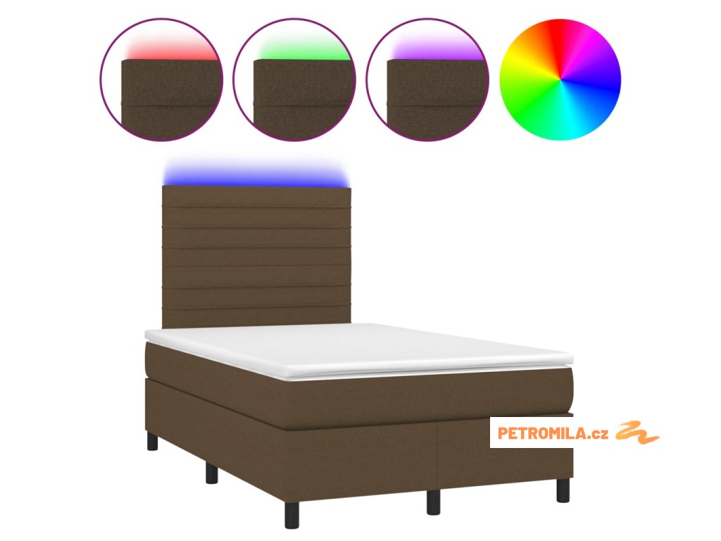 Box spring postel s matrací a LED tmavě hnědá 120x200 cm textil