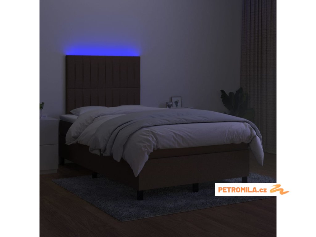 Box spring postel s matrací a LED tmavě hnědá 120x200 cm textil