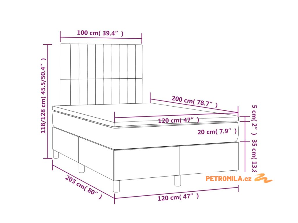 - Rozměry: 120 x 200 x 20 cm (Š x D x V)