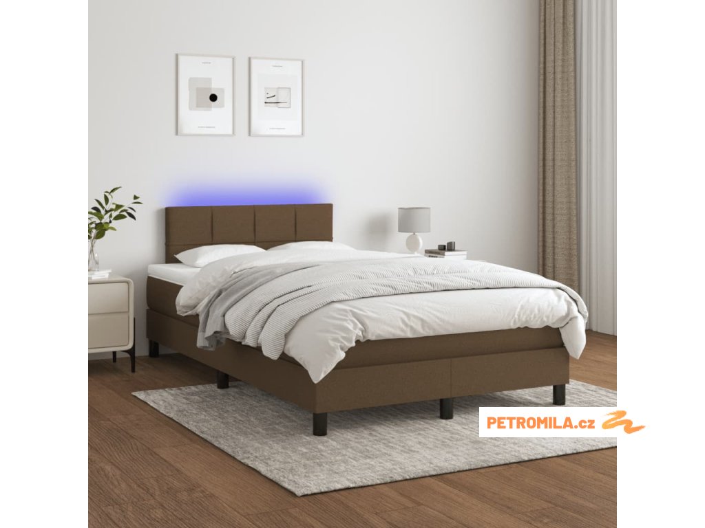 Box spring postel s matrací a LED tmavě hnědá 120x200 cm textil