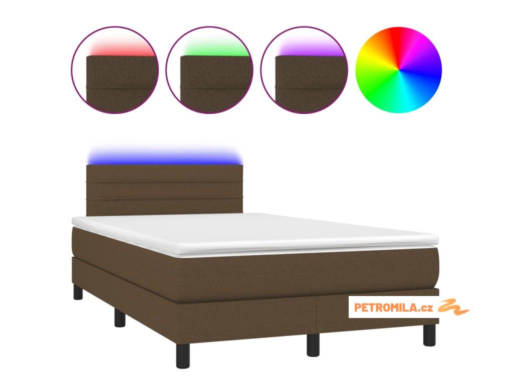 Box spring postel s matrací a LED tmavě hnědá 120x200 cm textil