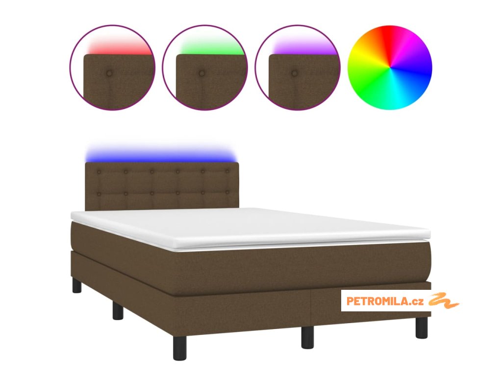 Box spring postel s matrací a LED tmavě hnědá 120x200 cm textil