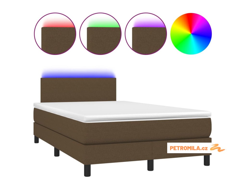 Box spring postel s matrací a LED tmavě hnědá 120x200 cm textil