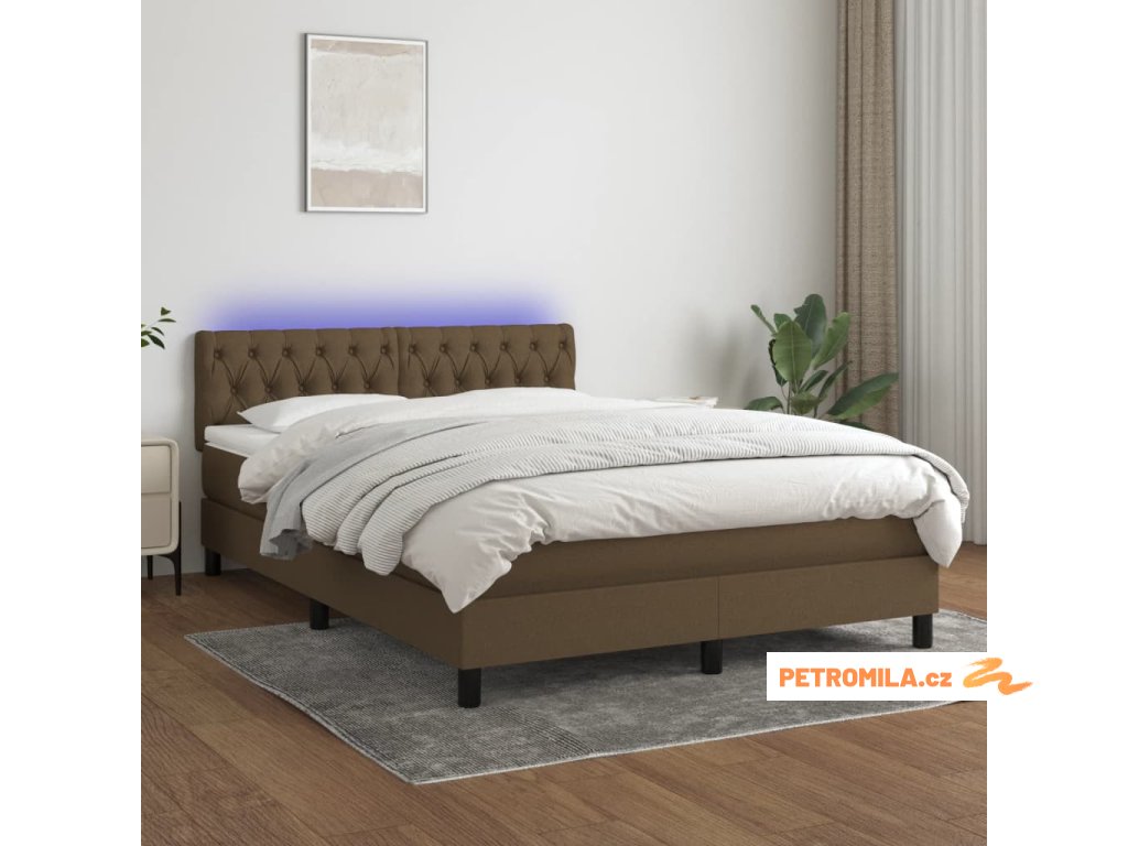 Box spring postel s matrací a LED tmavě hnědá 140x190 cm textil