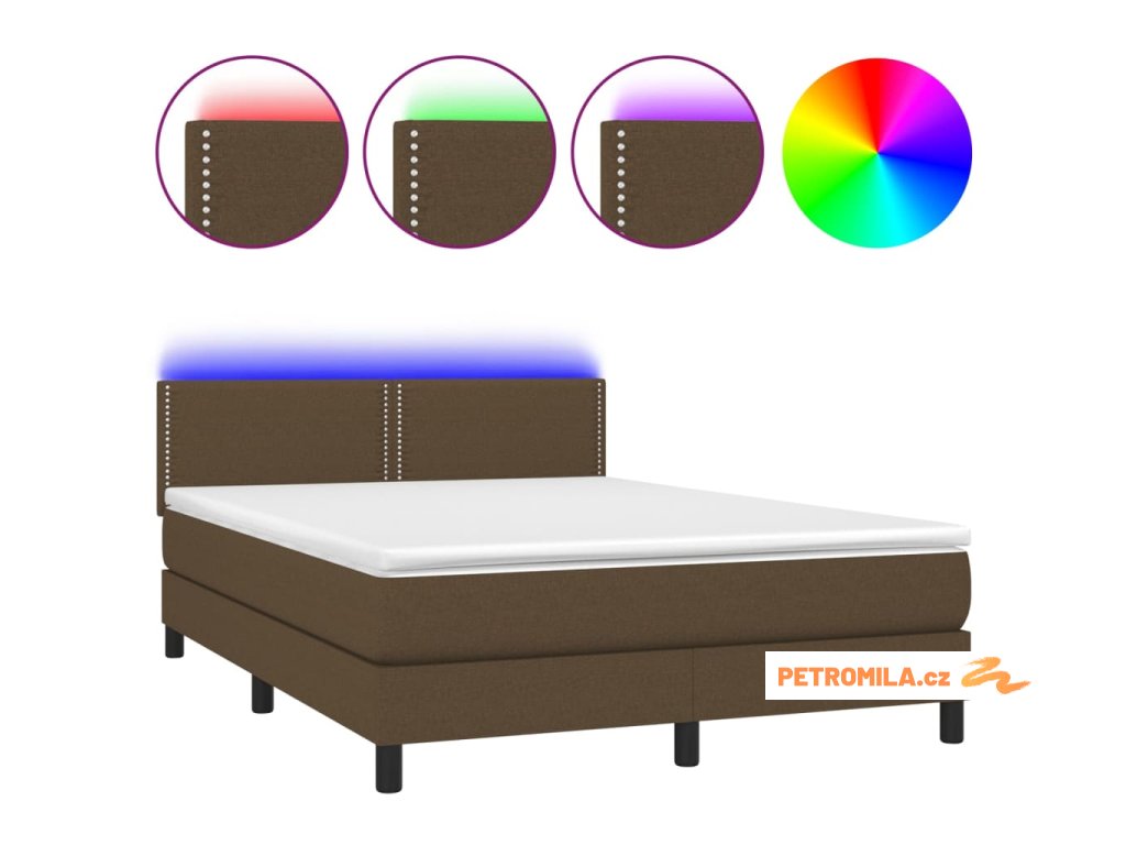 Box spring postel s matrací a LED tmavě hnědá 140x200 cm textil