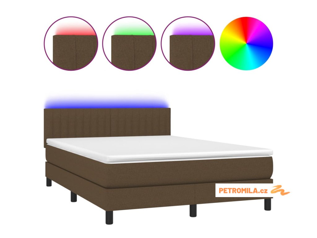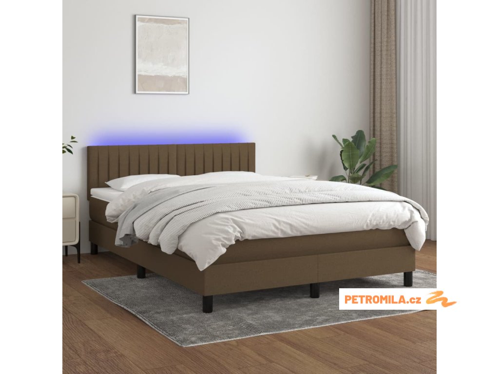 Box spring postel s matrací a LED tmavě hnědá 140x200 cm textil