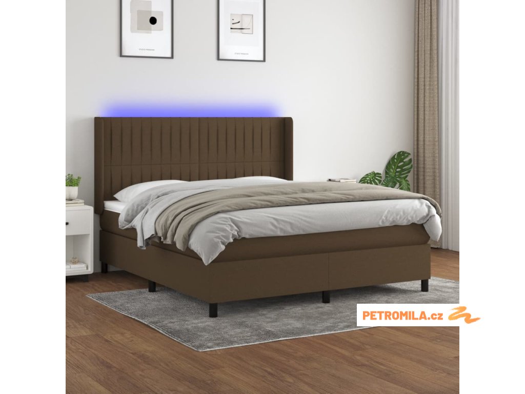 Box spring postel s matrací a LED tmavě hnědá 160x200 cm textil