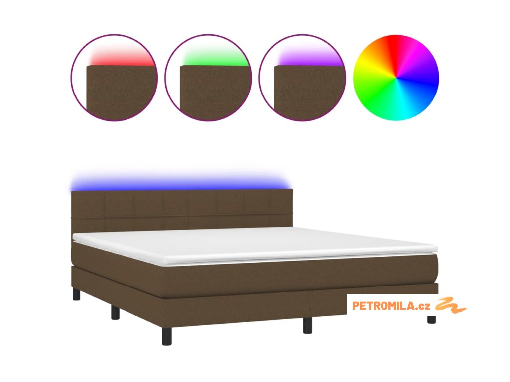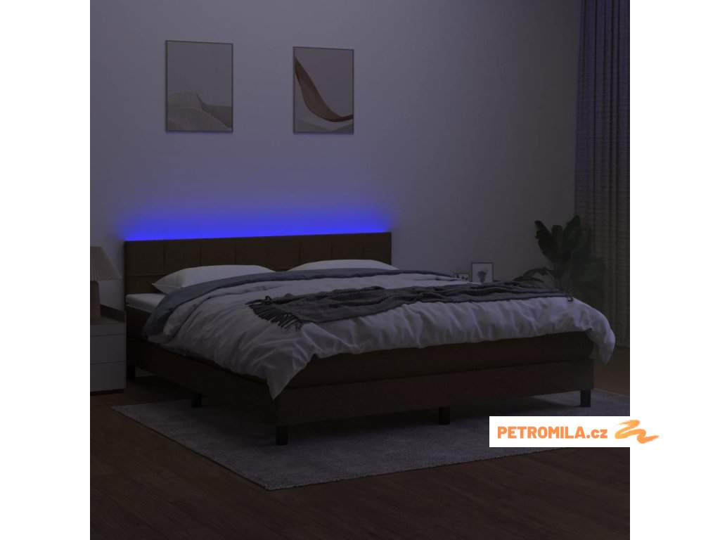Box spring postel s matrací a LED tmavě hnědá 160x200 cm textil