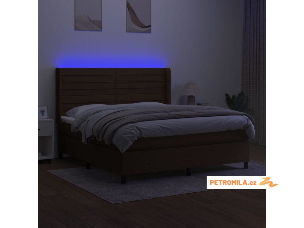 Box spring postel s matrací a LED tmavě hnědá 160x200 cm textil