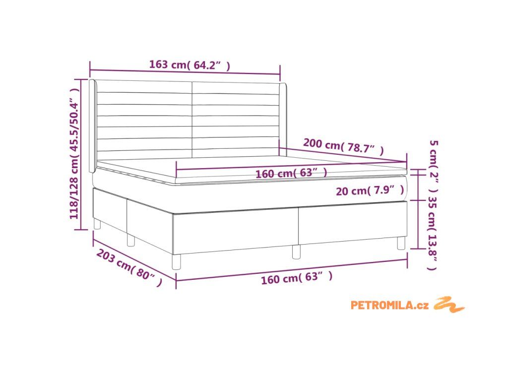 - Celkové rozměry: 203 x 163 x 118/128 cm (D x Š x V)