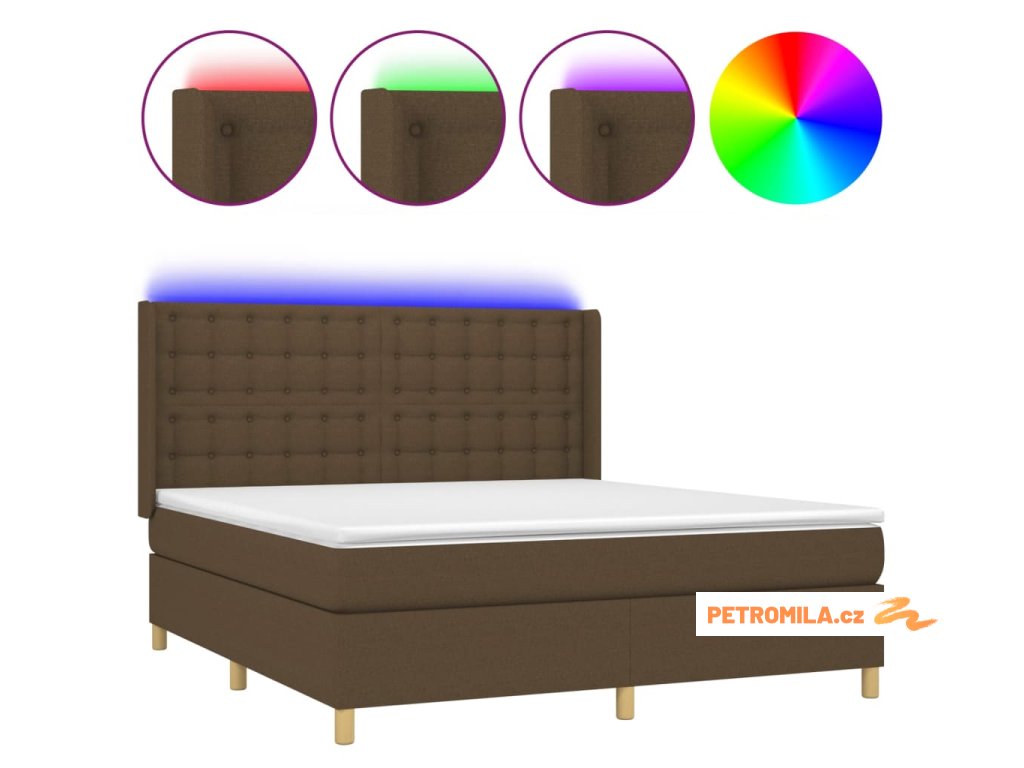 Box spring postel s matrací a LED tmavě hnědá 160x200 cm textil