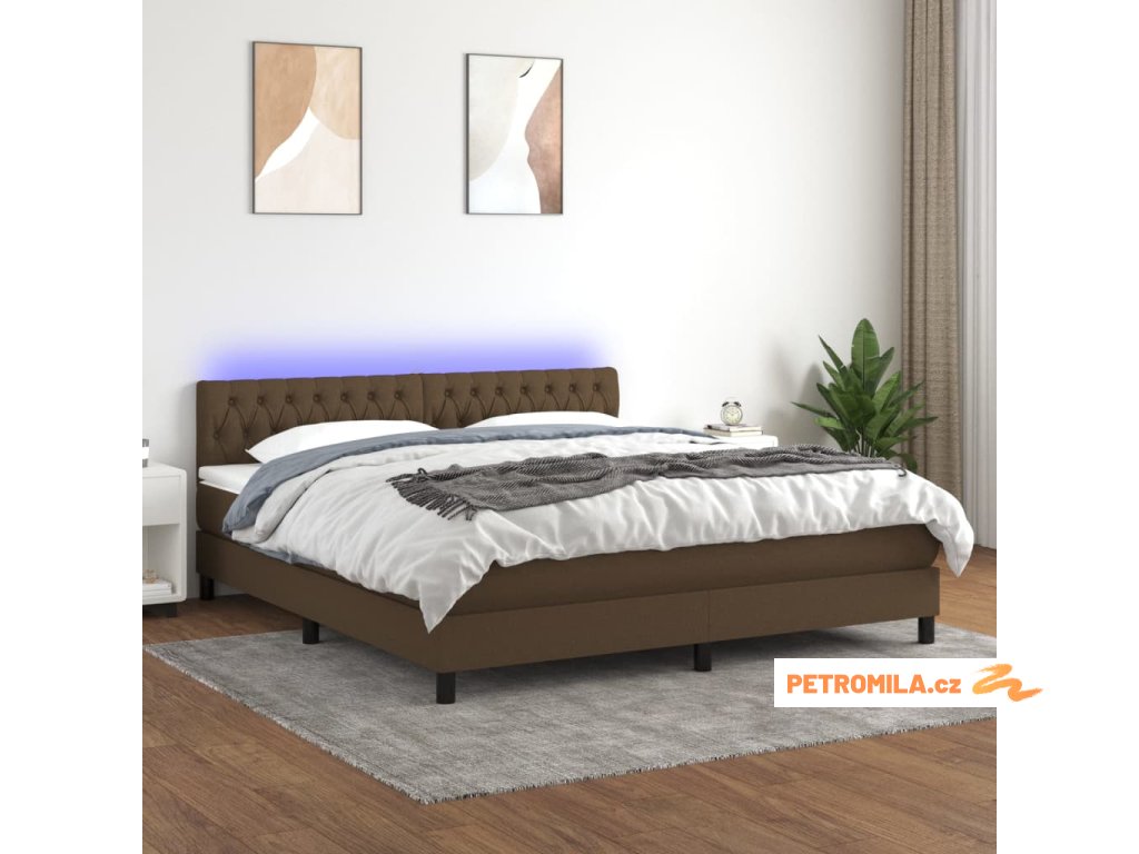 Box spring postel s matrací a LED tmavě hnědá 160x200 cm textil