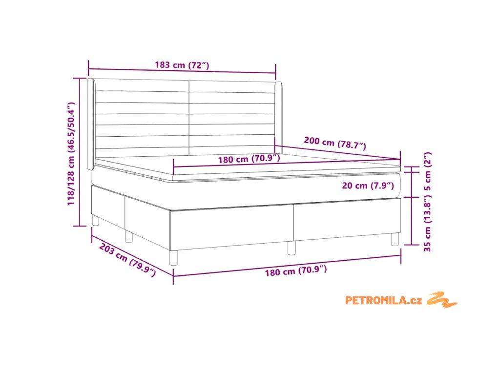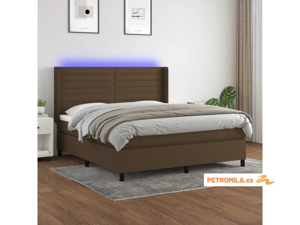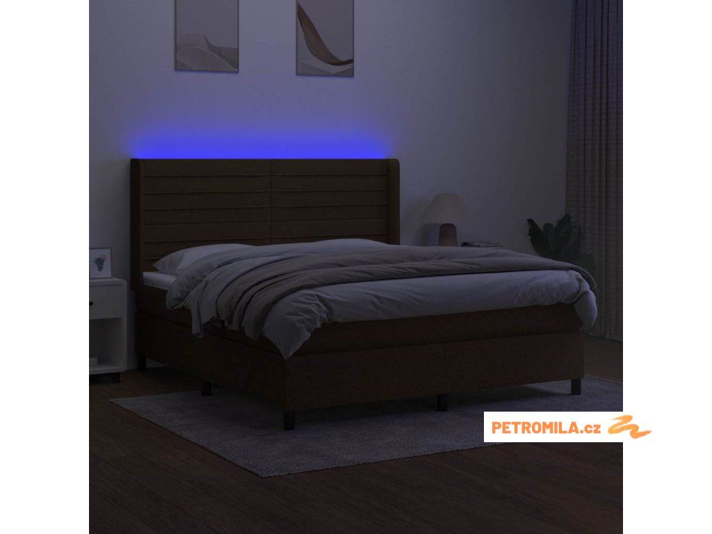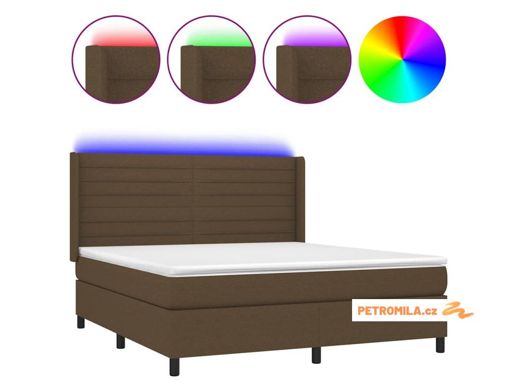 Box spring postel s matrací a LED tmavě hnědá 180x200 cm textil