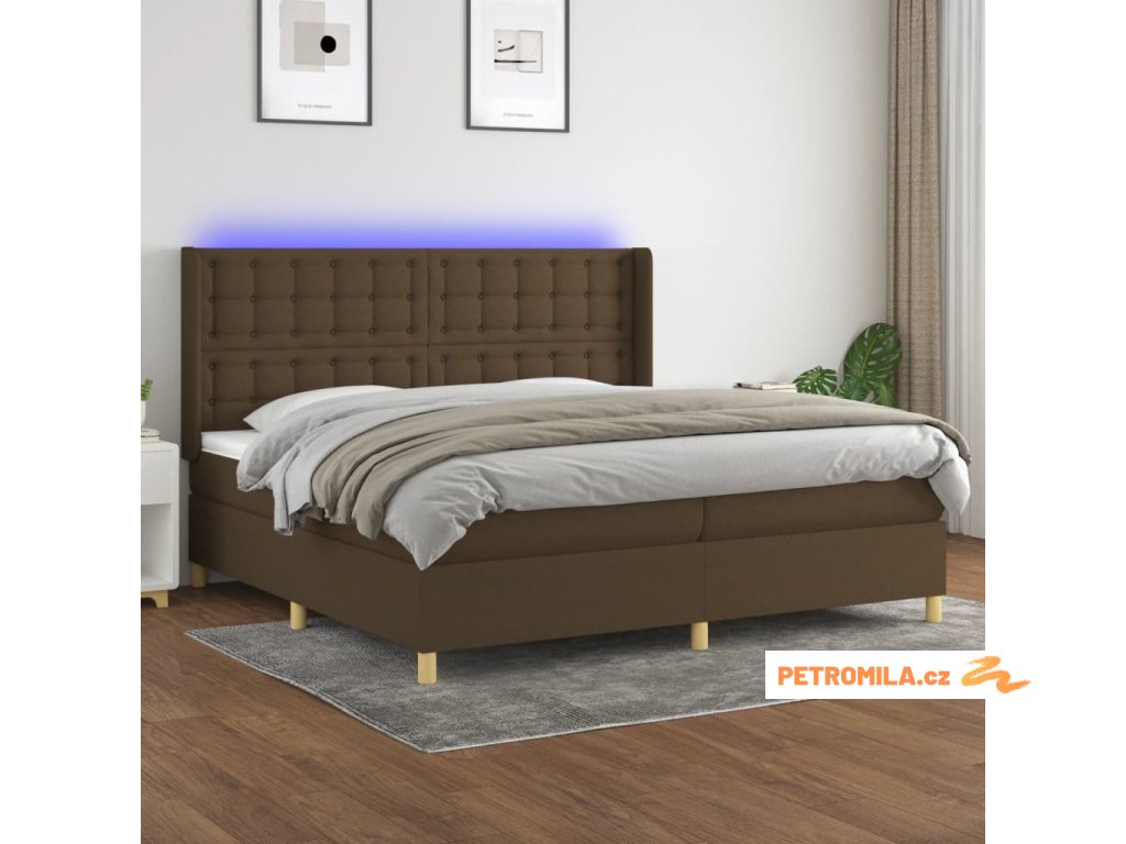 Box spring postel s matrací a LED tmavě hnědá 200x200 cm textil