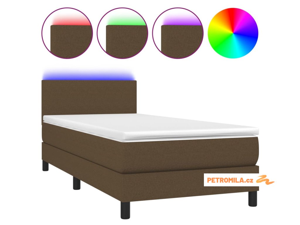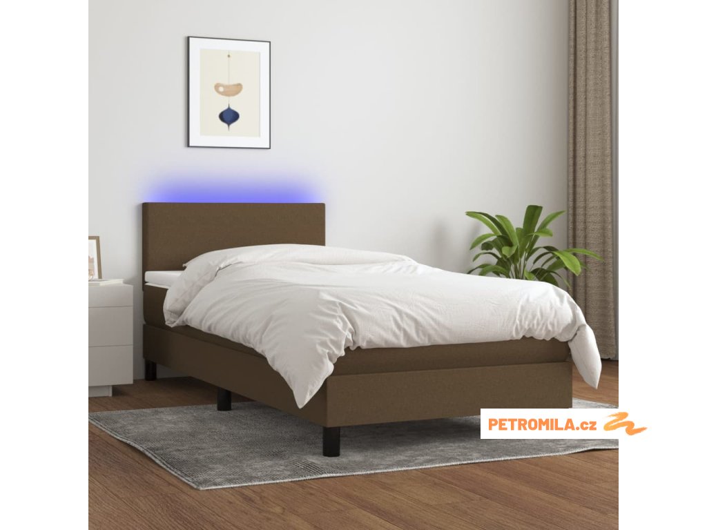 Box spring postel s matrací a LED tmavě hnědá 80x200 cm textil