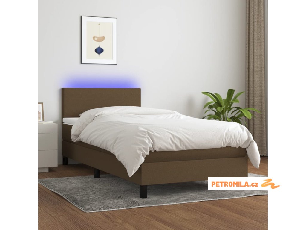 Box spring postel s matrací a LED tmavě hnědá 90x190 cm textil