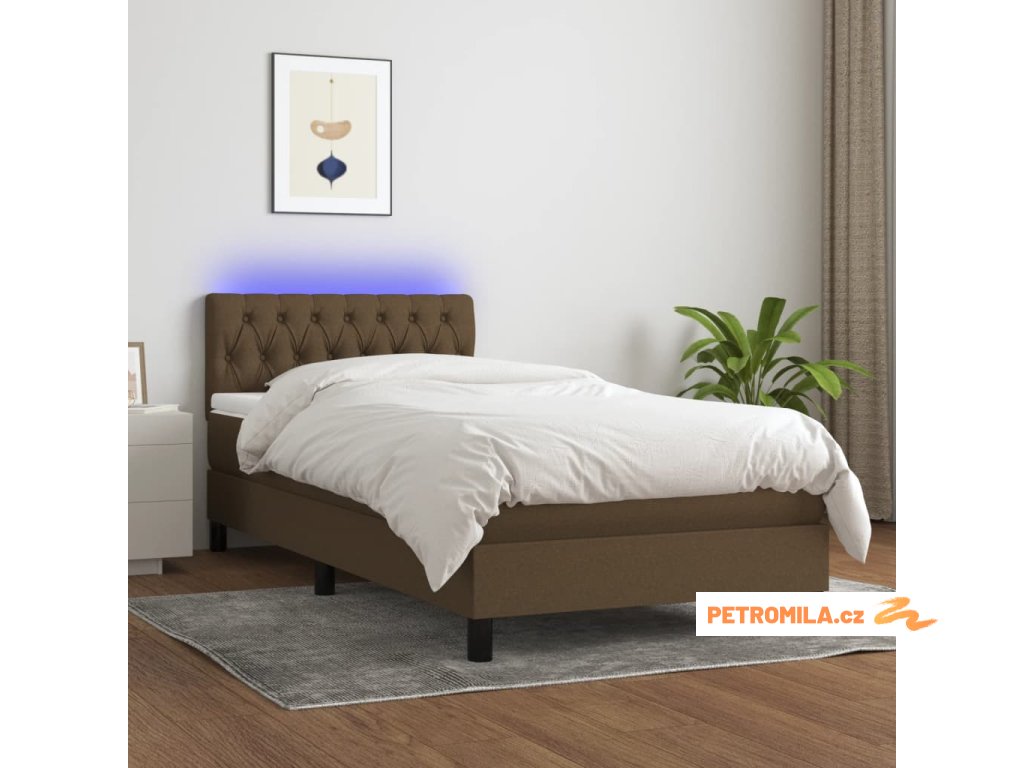 Box spring postel s matrací a LED tmavě hnědá 90x200 cm textil