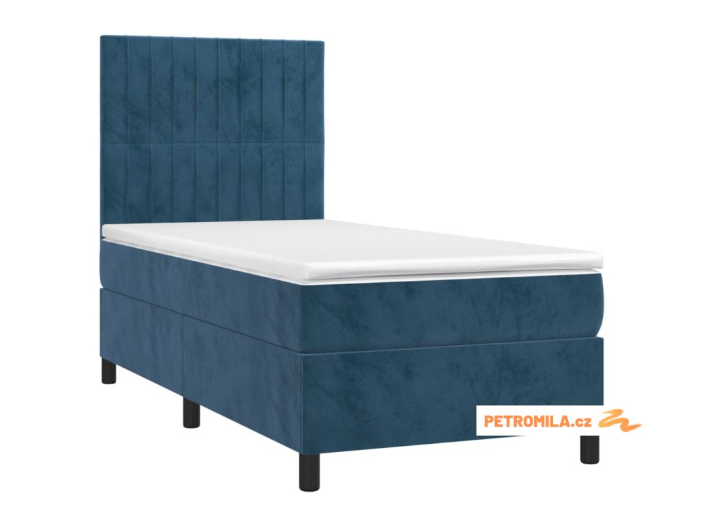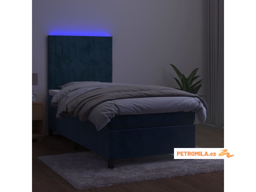 Box spring postel s matrací a LED tmavě modrá 100x200 cm samet